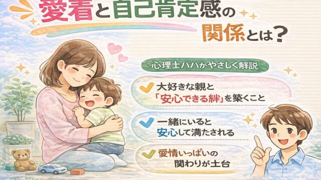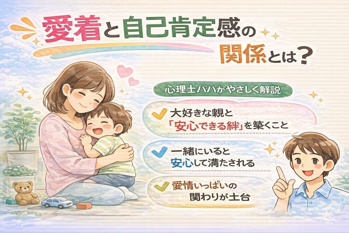 2026年2月20日 goodbye0607 愛着と自己肯定感の関係とは? 心理士パパがやさしく解説 「自己肯定感が低い気がする…」「愛着と関係あるの?」 子育てをしていると、愛着と自己肯定感の関係について不安に …