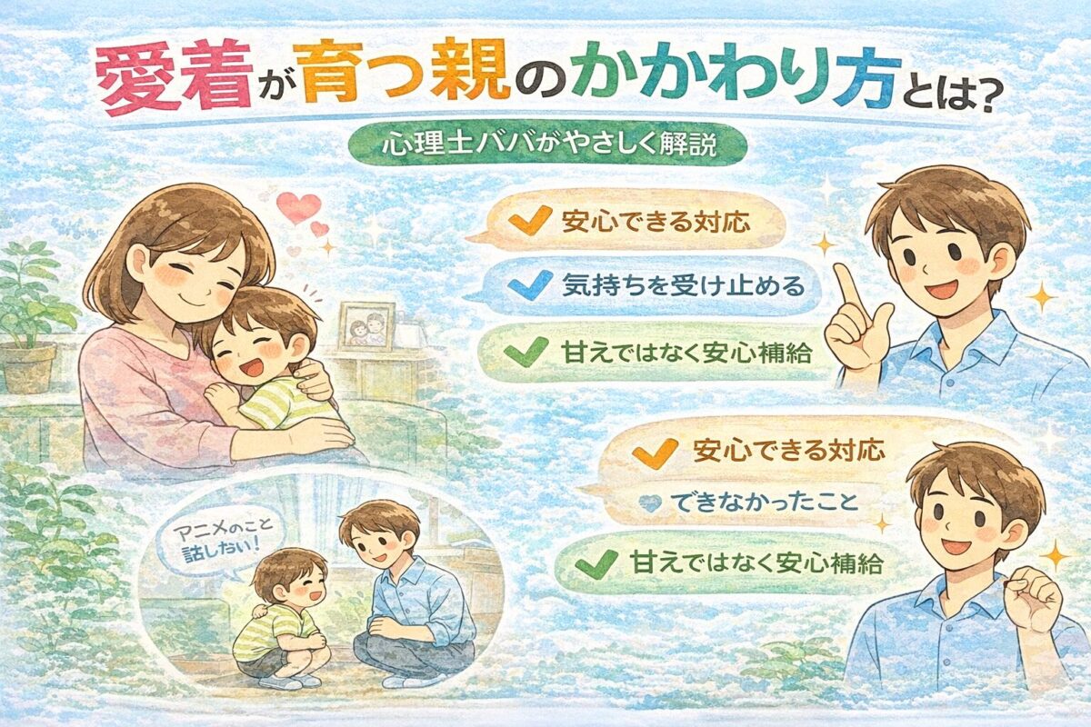 2026年2月8日 goodbye0607 愛着が育つ親のかかわり方とは? 心理士パパが家庭でできるポイントをやさしく解説 「愛着が大事って聞くけど、具体的にどう関わればいいの?」 そんな疑問を感じたことは …